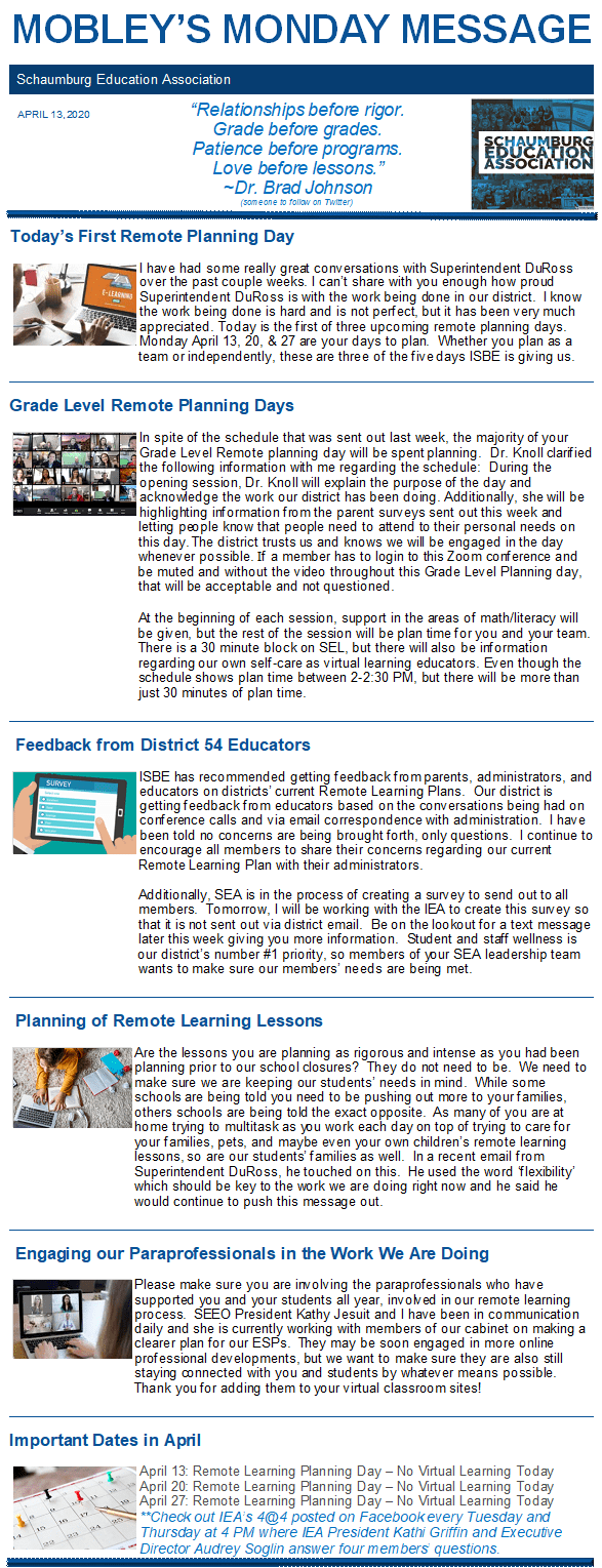 Mobley’s Monday Message 4-13-2020