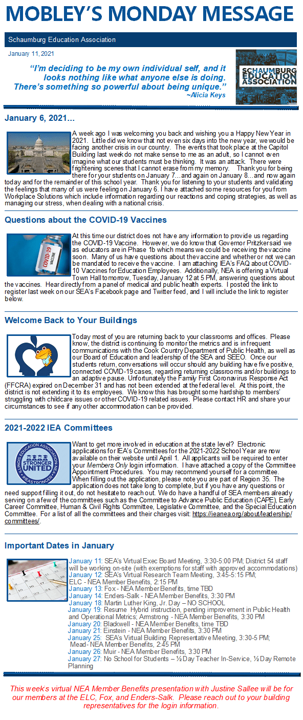 Mobley’s Monday Message 1-11-21 Other links: Answering Your Questions about COVID-19 Vaccines Webinar Related